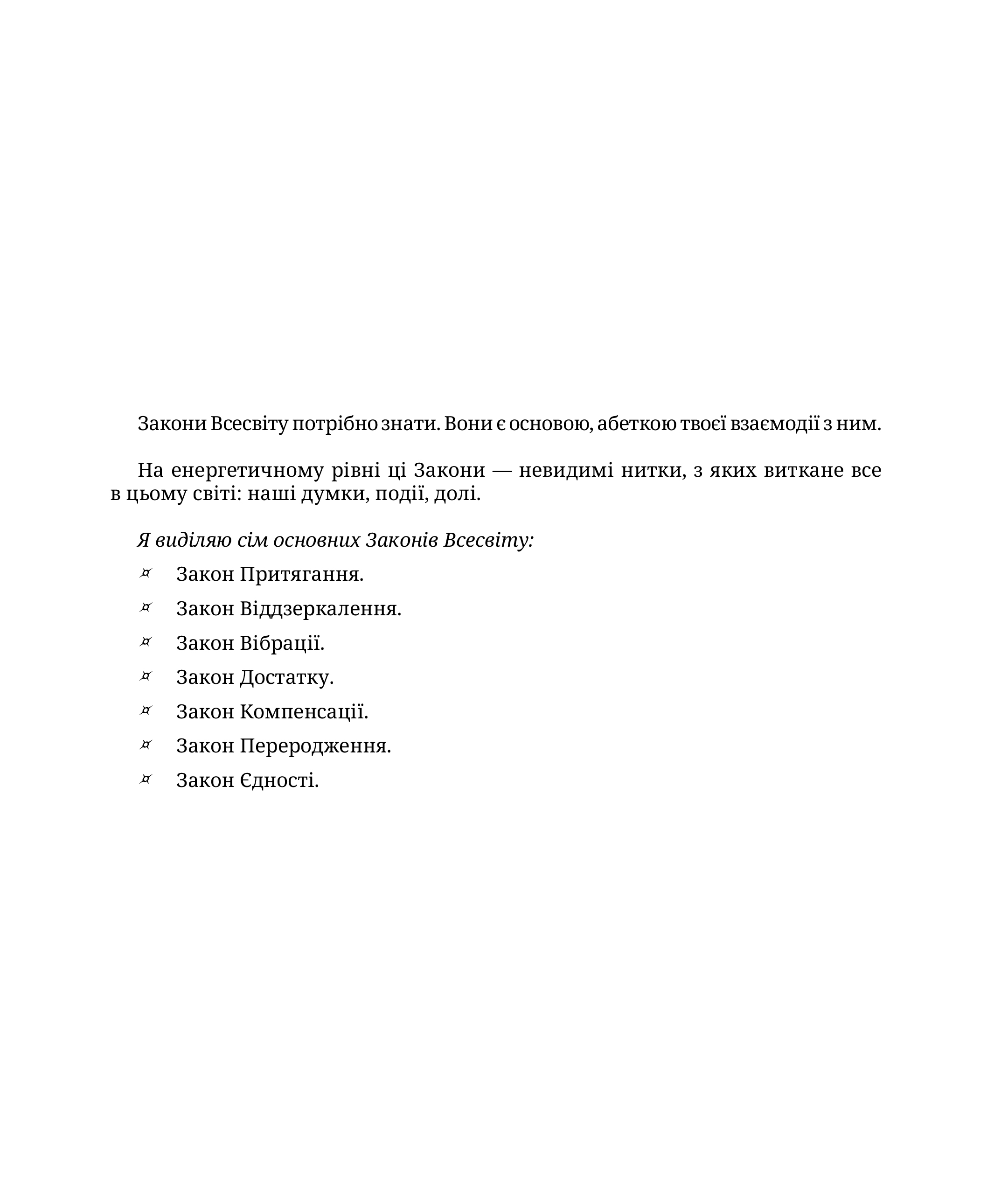 Анотація: Книга Віри Подкоритової — це практичний посібник для тих, хто прагне досягти гармонії, щастя та пізнати глибокі закони Всесвіту. Авторка ділиться власними методиками і знаннями, що допомогли їй відновити своє життя після важких випробувань. Читач навчиться розкривати свій потенціал і відкривати нові “двері” можливостей у своєму житті. Основною темою книги є розуміння того, як працюють закони Всесвіту і як через них можна відчути справжнє щастя. Книга допоможе читачеві не тільки осмислити важливі життєві цінності, але й знайти практичні способи змінити своє життя на краще, використовуючи нові знання та інтуїцію.